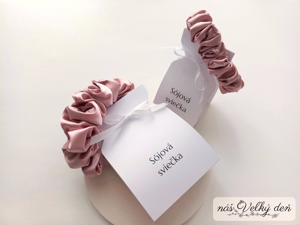 Kvalitná sójová sviečka pre vytvorenie atmosféry a jemná saténová gumička do vlasov ako estetický a praktický doplnok. Tieto dva krásne produkty nájdete v našom darčekovom sete. Sviečku vám navyše zabalíme do darčekového balenia. Akú kombináciu sviečky a gumičky zvolíte, je len na vás, cena setu začína od 5,50 €.