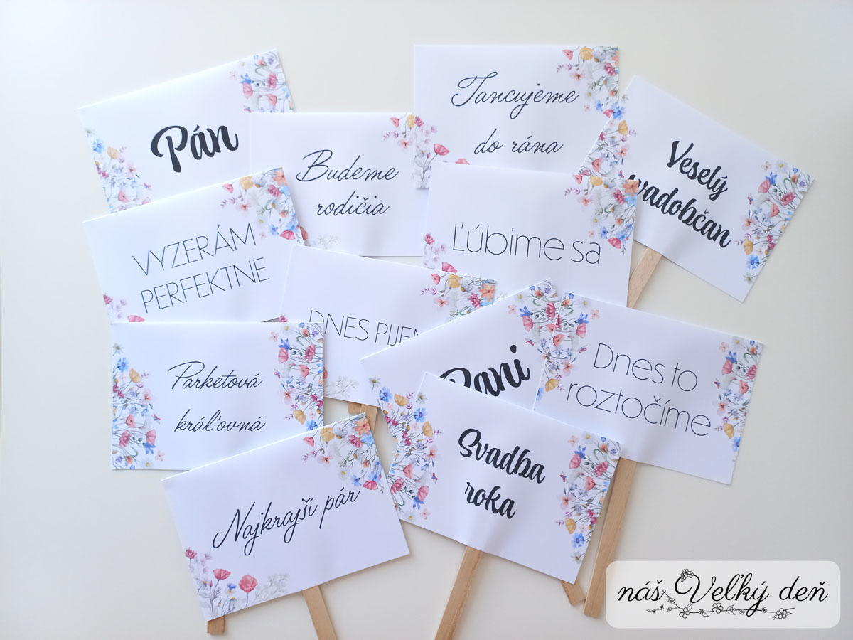 Dizajn vieme prispôsobiť ostatným tlačovinám alebo téme oslavy. K motívu vieme doladiť aj ostatné potrebné tlačoviny, alebo doladiť dizajn rekvizít k vašim ostatným tlačovinám.