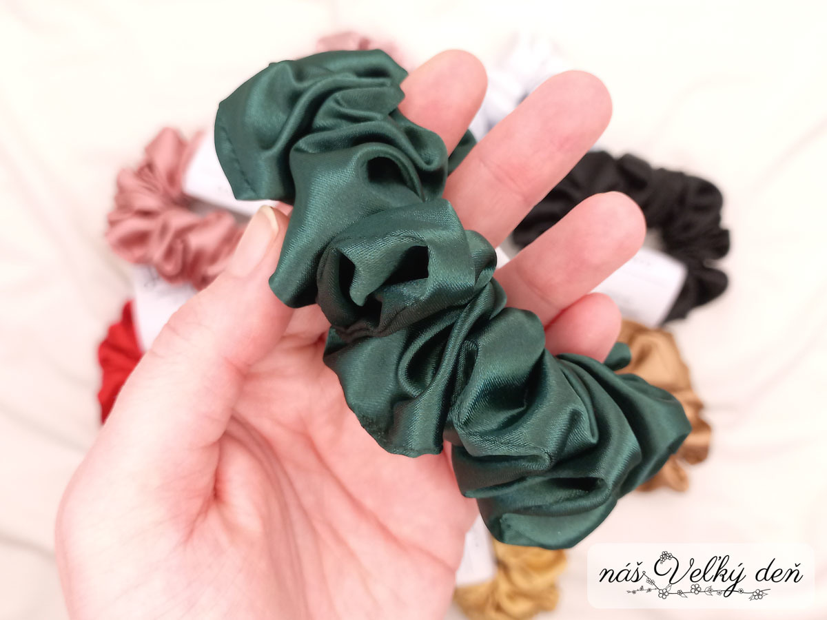 Elegantná tmavozelená saténová gumička do vlasov v štandardnej veľkosti CLASSIC. Praktický a vkusný doplnok, ktorý navyše decentne dotvorí váš celkový vzhľad.