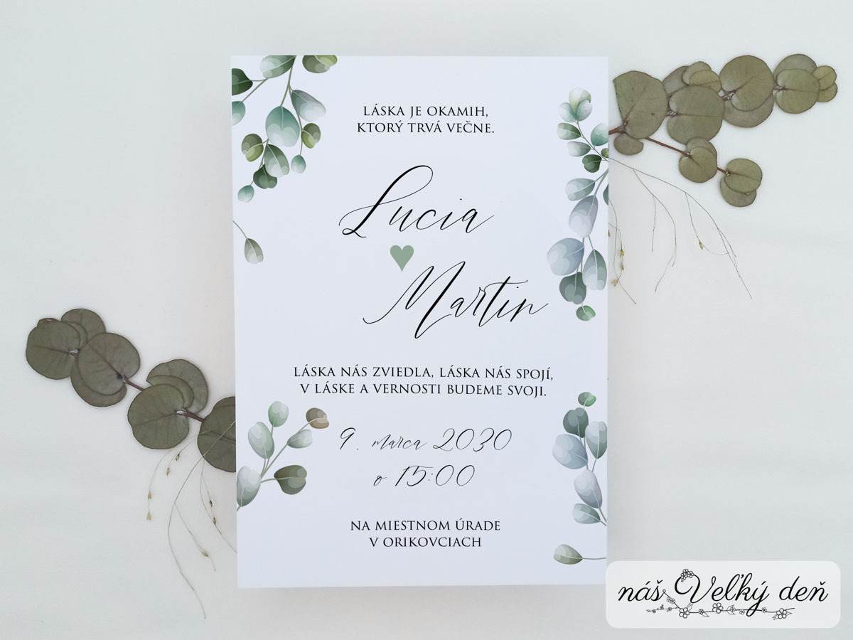 Svadobné oznámenie - Jemný eukalyptus Skladom