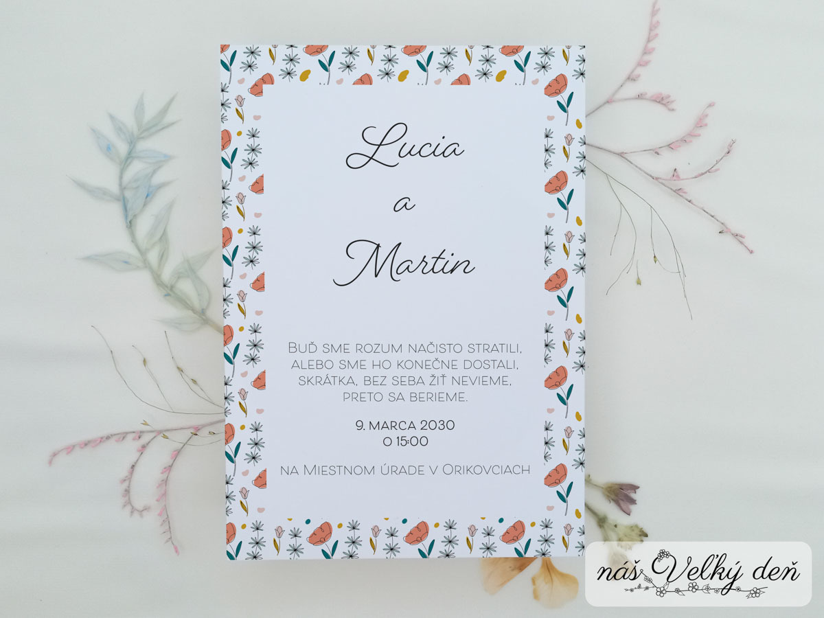 - K tomuto motívu oznámenia u nás nájdete aj pozvánky k svadobnému stolu a svadobné menovky.