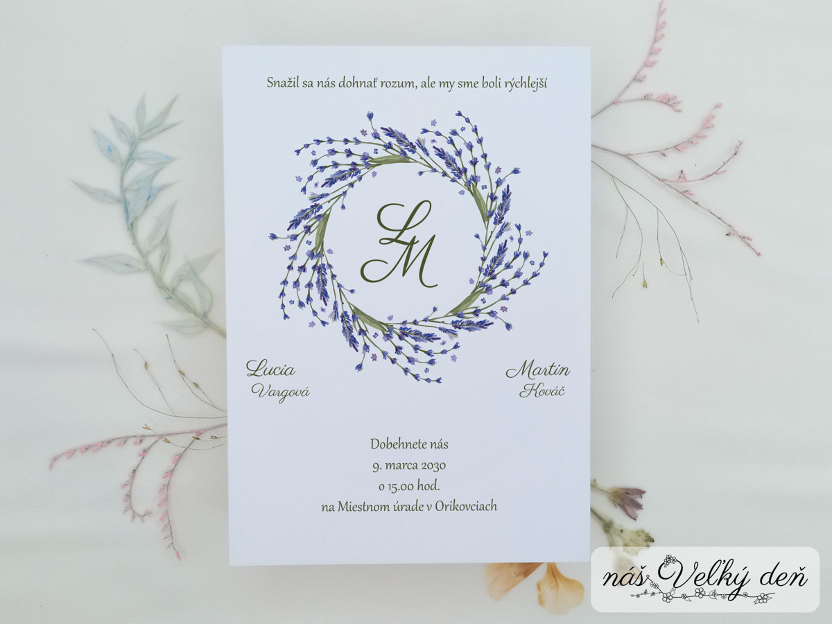 - K tomuto motívu oznámenia u nás nájdete aj pozvánky k svadobnému stolu a svadobné menovky.